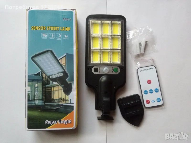 Сензорна дворна лампа, соларна. Супер ярка. С дистанционно управление. В оригинална опаковка.