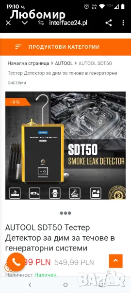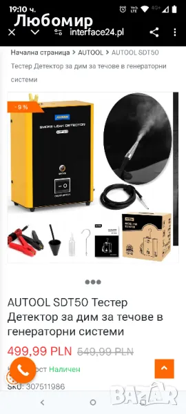 AUTOOL SDT50 Тестер Детектор за дим за течове в генераторни системи
