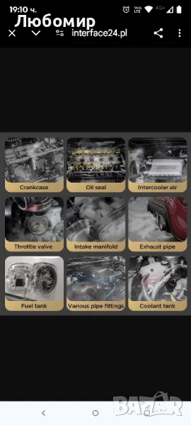 Професионален автоматичен тестер за течове на тръби, маркучи, съединения, инсталации с димогенератор. Това ще ни помогне бързо и точно да локализираме течовете в тръбопроводните системи в рамките на минути. Устройството може да се използва за тестване на всмукателната система, изпускателната система, охладителната система, тест за уплътняване на автомобила, тест на системата на резервоара за гориво и различни тръбни съединения.Налейте 10 ml бебешко олио в детектора за течове.2. Отворете капака на двигателя и окачете детектора в капака.