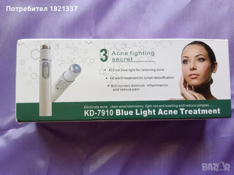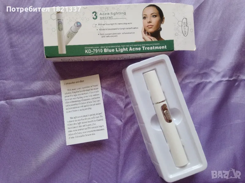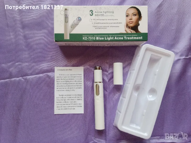 KD-7910 Лечение на акне със синя светлина. Борба с пъпките. Изчистване на петна от акне. С оригинална кутия и инструкция за употреба.