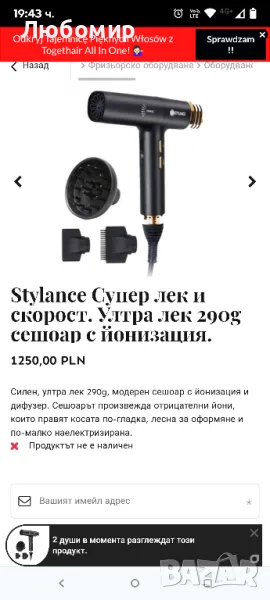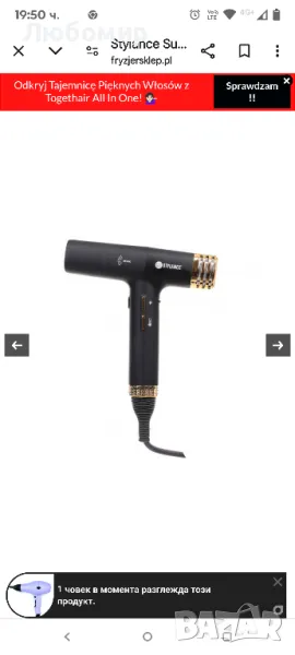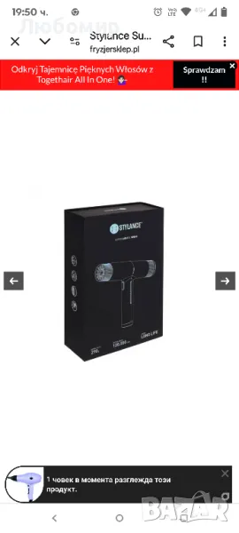 Stylance Супер лек и скорост. Ултра лек 290g сешоар с йонизация.