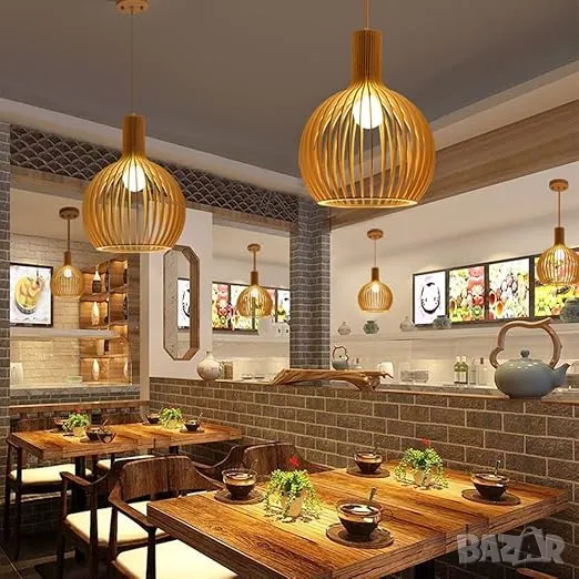 Ретро висящи лампи от бамбуково дърво E27 Индустриална висяща лампа в скандинавски стил, полилей, винтидж, регулируема по височина трапезарна настолна лампа, висяща лампа, всекидневна, спалня, трапезария, кафене, висяща лампа