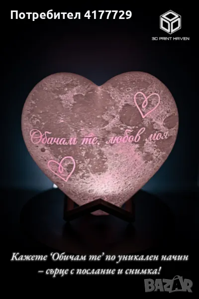Персонализирано Сърце лампа със снимка и послание - Уникалния Подарък!