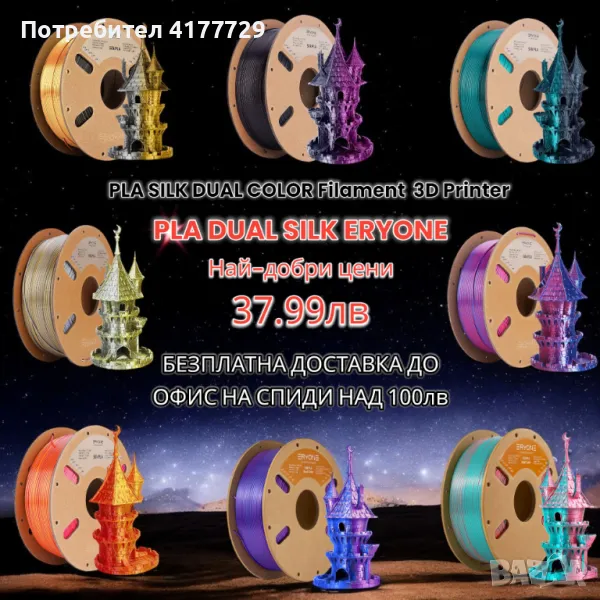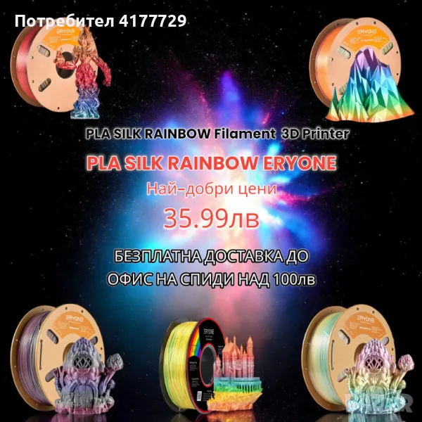 филамент,пла,пластмаса,3д,принтер,принтери,фдм,filaments,black,3d,fdm,силк,silk,rainbow,дъга,цвят,двуцветни,трицветни,матови,pla,нишка