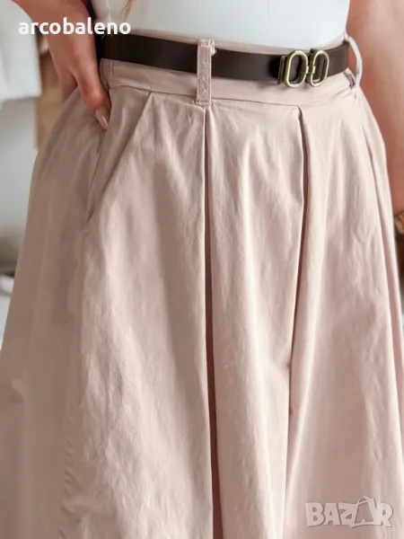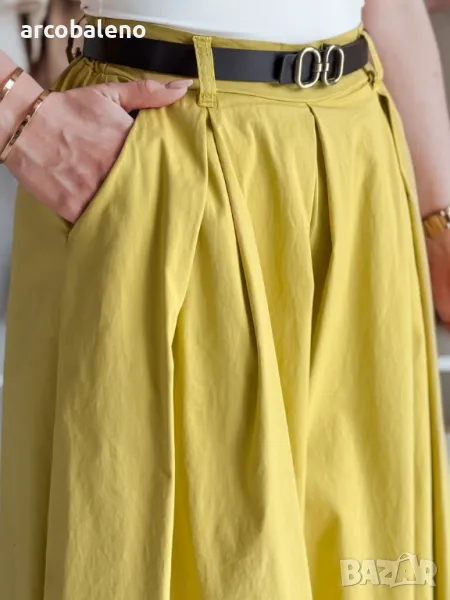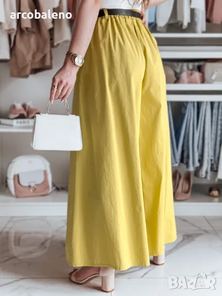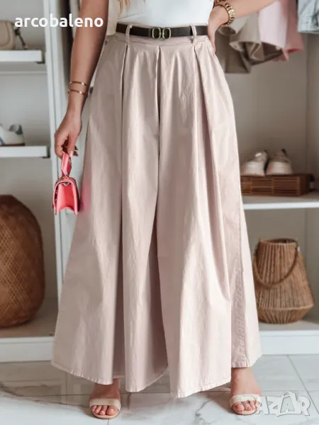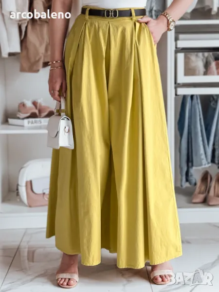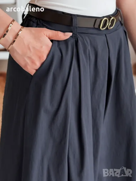 Изключително ежедневна кройка пола-панталон, която перфектно съчетава комфорт и стил. Високата талия красиво подчертава талията, а еластичната лента на гърба осигурява комфорт. Един размер за всички от XS до L. Комплектът се предлага с колан за завършване на визията. Моделът е снабден с два декоративни джоба отпред. Перфектен за ежедневни разходки и срещи с приятели.