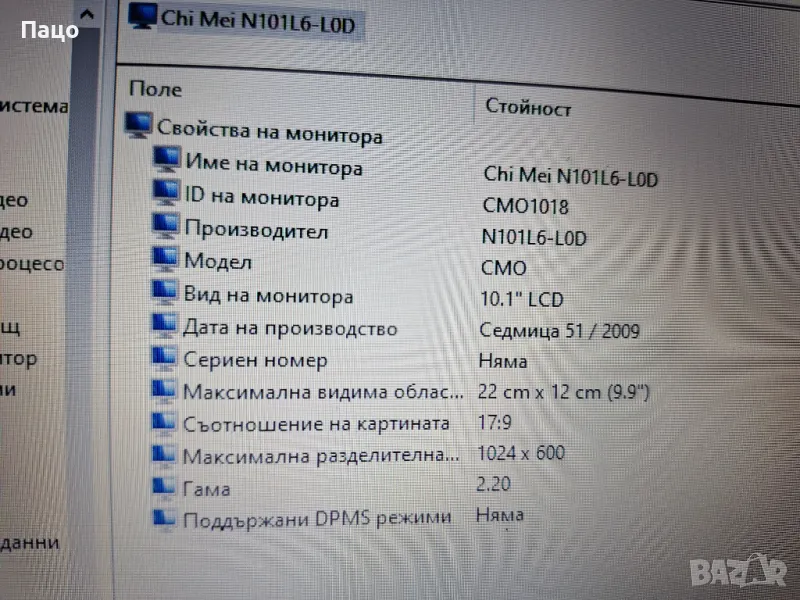 10.1 N101L6-L0D REV.C2/Тествана е,има снимки/С опция преглед и тест е/40 пина е/Цената е Твърда/Символична/