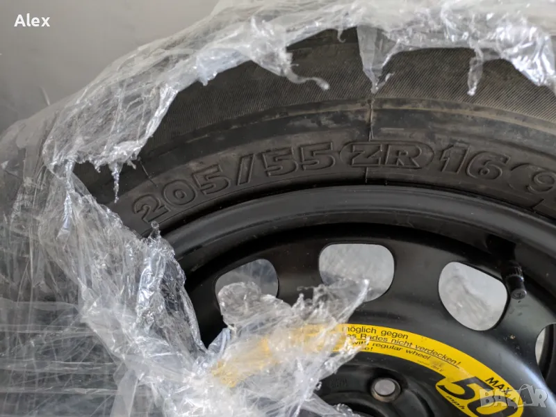 Резервна гума 5x112 205/55/16 VW/Skoda/Seat/Audi, снимка 1 - Гуми и джанти - 49615985 Резервна гума 5x112 205/55/16 VW/Skoda/Seat/Audi, снимка 2 - Гуми и джанти - 49615985 1/2