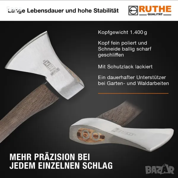 брадва предлага максимална острота и прецизност за ефективно посичане и недокосване. Идеален за професионалисти в GaLa строителството и горското стопанство.