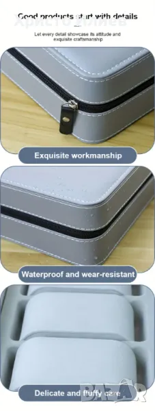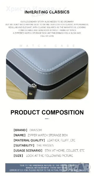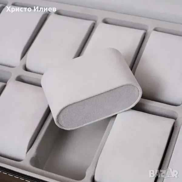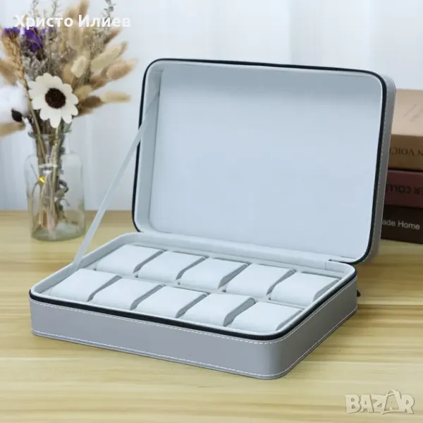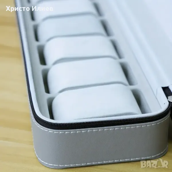 Луксозна сива кутия за часовници Органайзер за часовник с 10 отделения за 10бр с цип