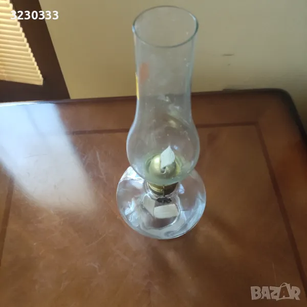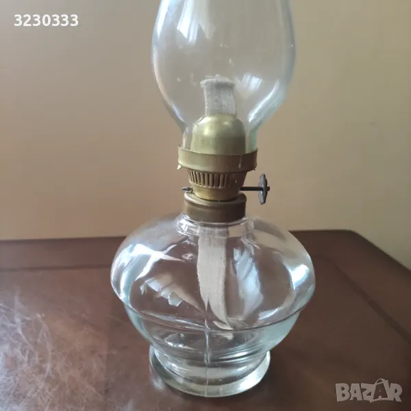 Стъклена настолна газена лампа от соца, нова, неупотребявана с фитил, без забележка. Размери, височина-32 см., отвор-4 см., дъно-7.5 см. По Еконт с 10% отстъпка.