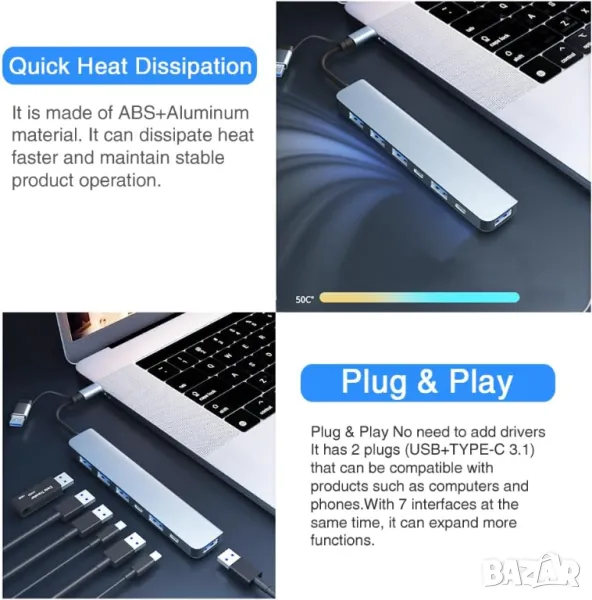 работа. Включва 1 USB 3.0 порт (5Gbps), 4 USB 2.0 порта, 1 USB C PD порт за