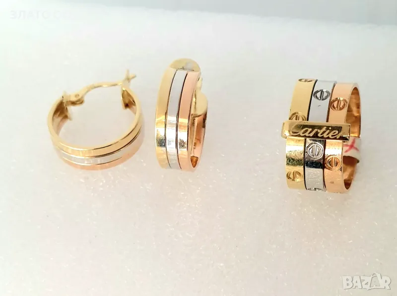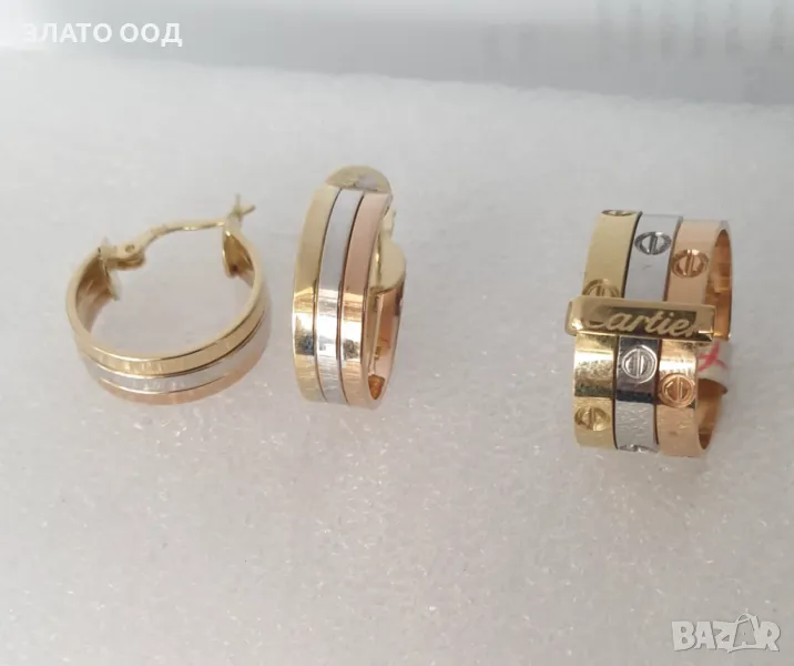 Златни обеци и пръстен 3 цвята -14К → Обява 49617917
