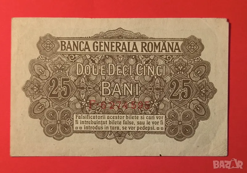 Румъния 25 бани 1917 г., снимка 1 - Нумизматика и бонистика - 49618355 Румъния 25 бани 1917 г., снимка 2 - Нумизматика и бонистика - 49618355 1/2