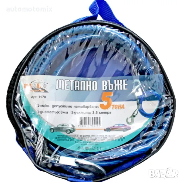 - Въже за теглене метално издържа до 5 тона натоварване.