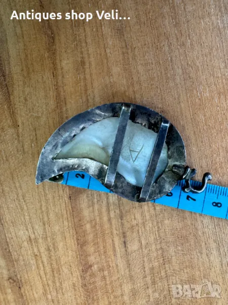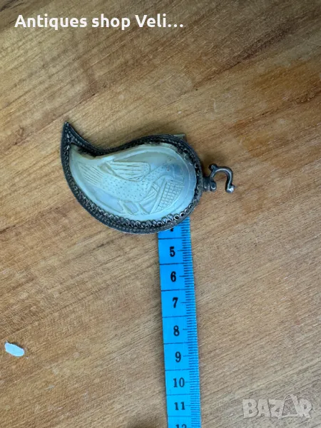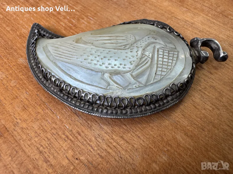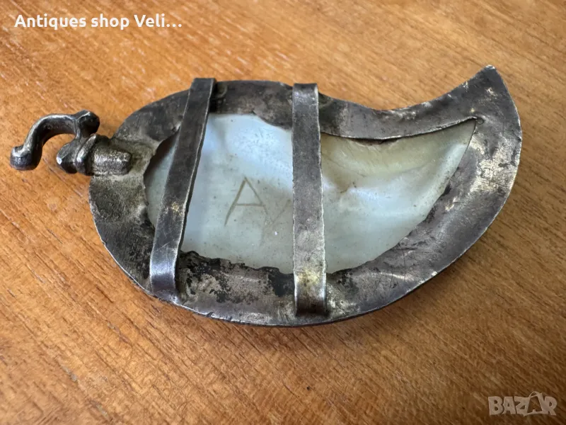 Сребърна пафта със седеф за съжаление само една. Добро състояние. Размерите са видни от снимките. Предлагаме доставка с Еконт и лично предаване за градовете Велико Търново, Русе и Сливен.