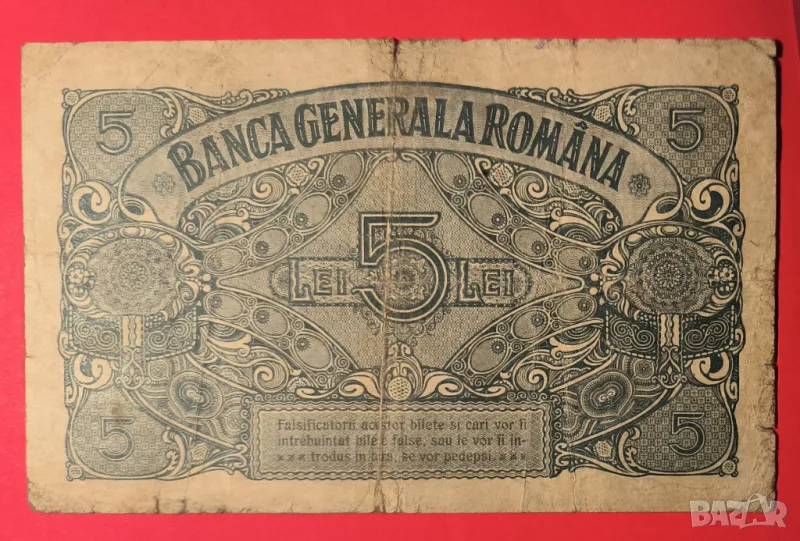 Румъния 5 леи 1917 г., снимка 1 - Нумизматика и бонистика - 49619105 Румъния 5 леи 1917 г., снимка 2 - Нумизматика и бонистика - 49619105 1/2