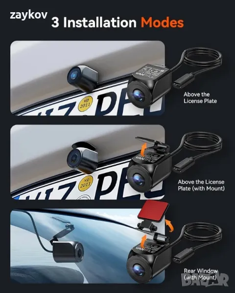 Лесно инсталиране и адаптивно монтиране: Включва множество скоби за безпроблемно инсталиране на различни места: вътре в задното стъкло, над регистрационния номер или здраво монтиран отгоре - изборът е ваш.