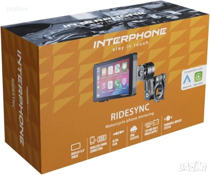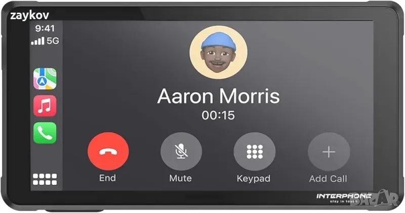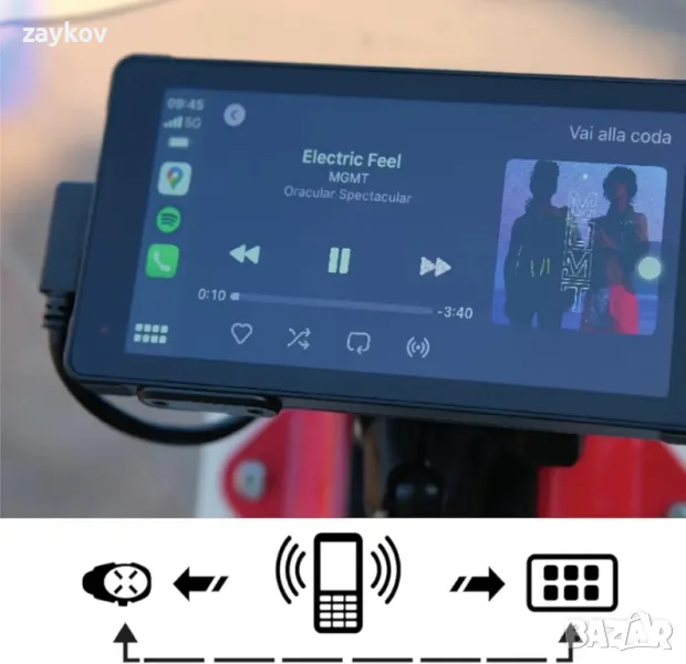 ИНТЕРФОН - Екран за мотоциклети Carplay - Android с стойка за кормило