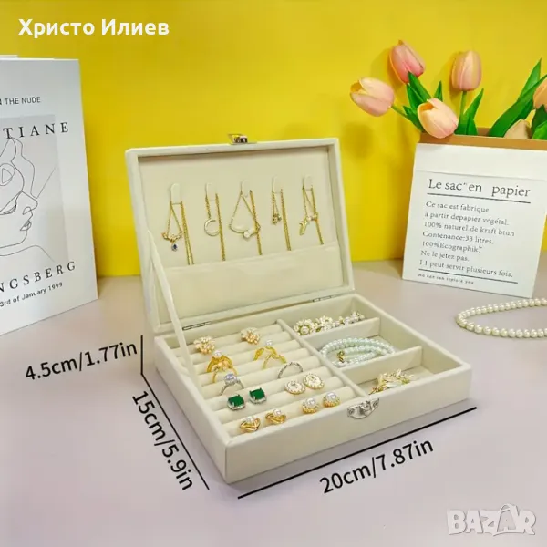 подреждаща се, многофункционална кутия за пръстени, обеци, гривни, колиета и т.н., изработена от мек кадифен материал, много подходяща за подаръци - за майки и жени