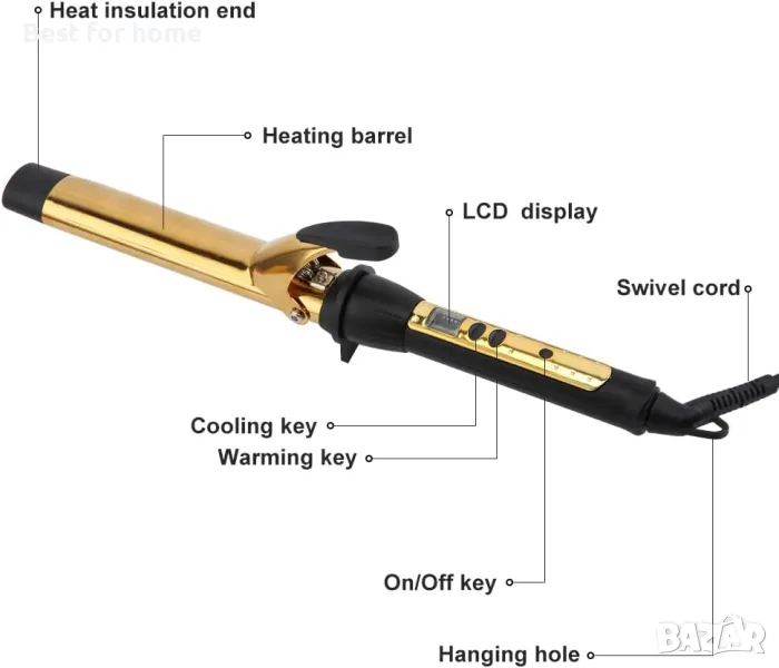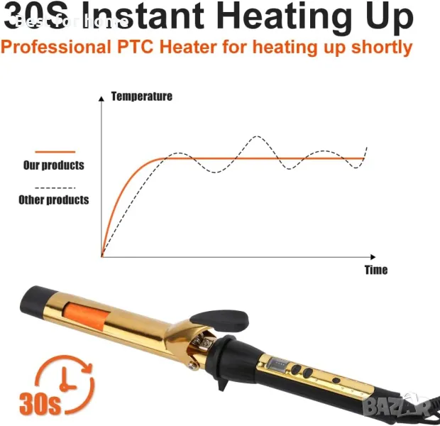 Незабавно загряване - Пръчката за къдрене на коса с усъвършенстван PTC нагревател може да се загрее за кратко за 30 секунди, което ви помага да спестите много време.