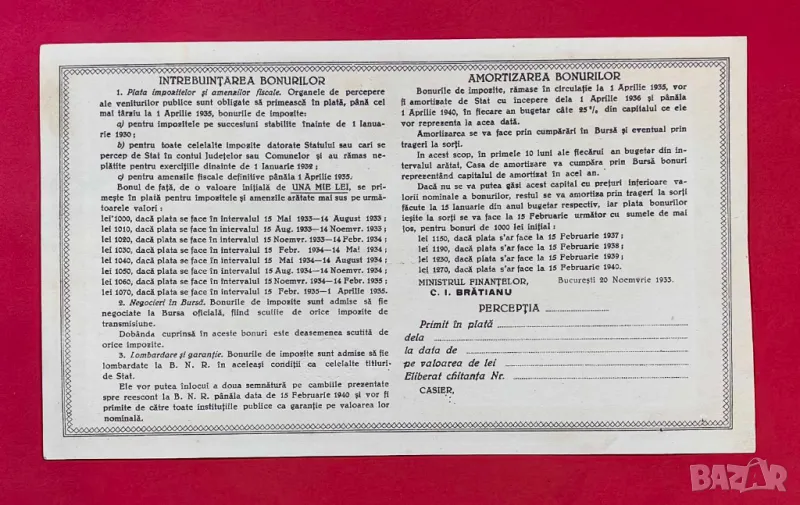 Румъния Таксов бон 1000 леи 1933 г., снимка 1 - Нумизматика и бонистика - 49620091 Румъния Таксов бон 1000 леи 1933 г., снимка 2 - Нумизматика и бонистика - 49620091 1/2