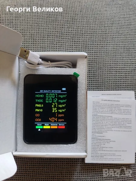 Компактни размери: Този дисплей е проектиран да бъде малък, което ви позволява да го поставите на бюрото си, без да заема прекалено много място, и е удобен за пренасяне. Многофункционално използване: Този монитор за качество на въздуха е подходящ за различни среди, като вашия дом, работно място, бюро, хотел и други. Четири цветни индикатора: Устройството разполага с четири различни цвята, които представляват различни нива на качество на въздуха: зеленият показва добро качество на въздуха, докато жълтият, оранжевият и червеният означават постепенно влошаване на качеството.