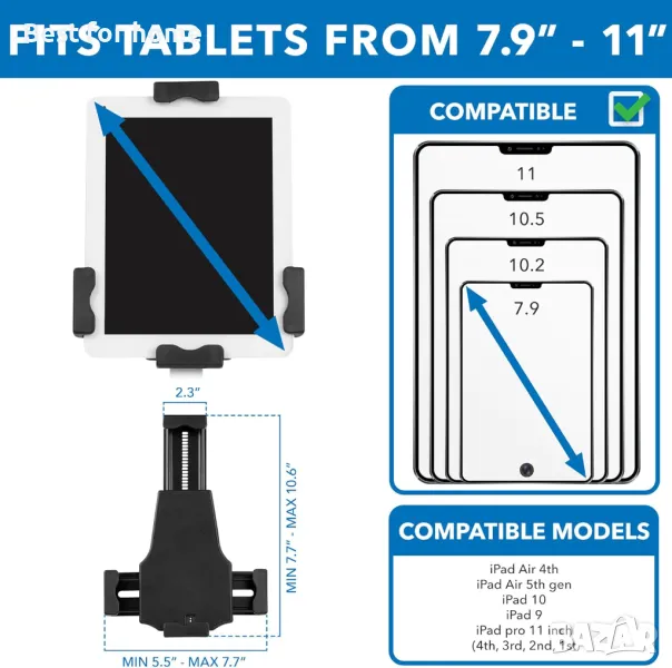 Монтирайте го! Сигурен универсален POS статив за таблети , регулируема скоба за iPad 7, iPad Mini, Samsung Galaxy Tab, Surface Go и таблети 7,9"- 10,5" - MI-3785.