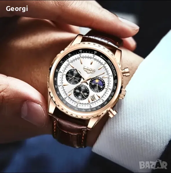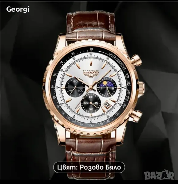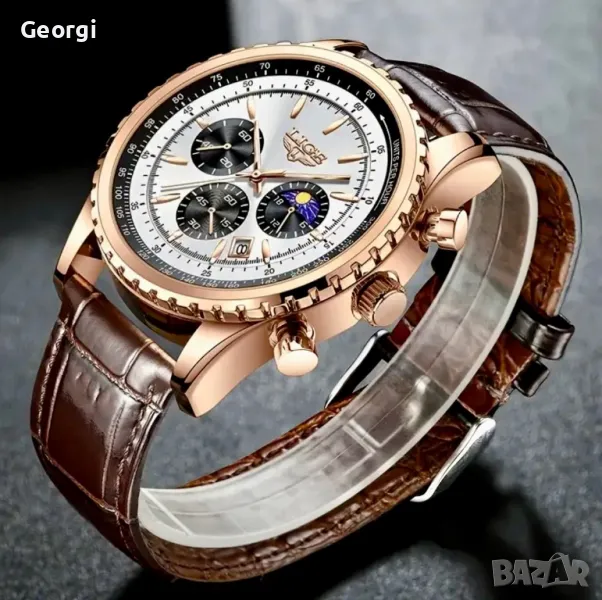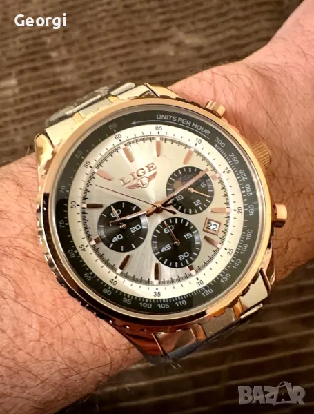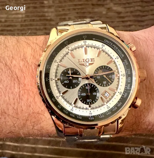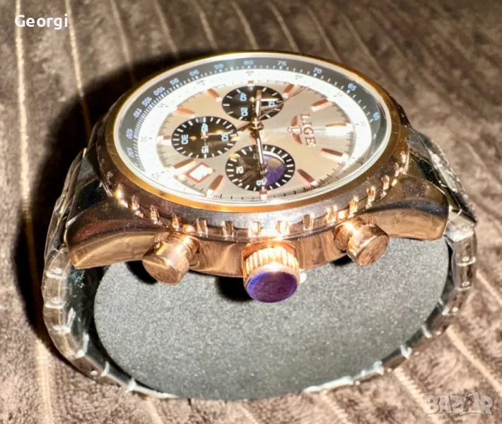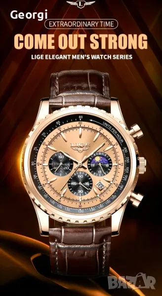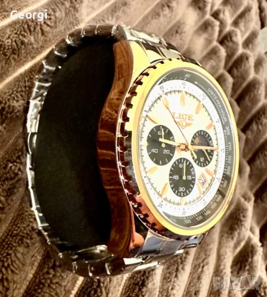 Мъжки класически, луксозен хронограф LIGE *Елегант* Аристократично златист металик !