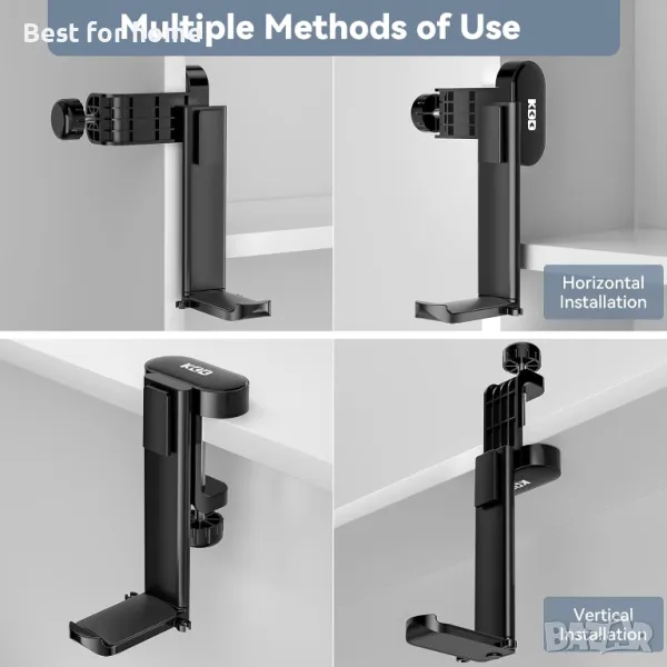 Многофункционален държач за слушалки - Лесен за инсталиране на бюра, шкафове, стъклени повърхности, монитори, настолни кули, рафтове и т.н. Захваща се за бюра с дебелина до 50 mm и тясни до 5 mm за почти универсално прилягане на повечето бюра.