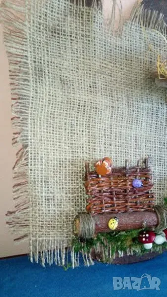 Декоративно Великденско пано върху дървена художническа палитра-смесени материали.30х24 см.Ръчна изработка.Може да бъде добавена стойка към паното(2.50 лв).