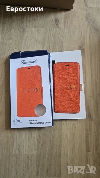 Faconnable Folio Защитен калъф от синтетична кожа за iPhone 6/7/8/SE 2020 оранжев, лакиран бутон. Портфейл за iPhone
