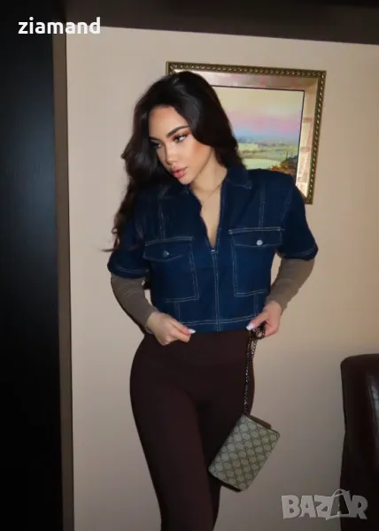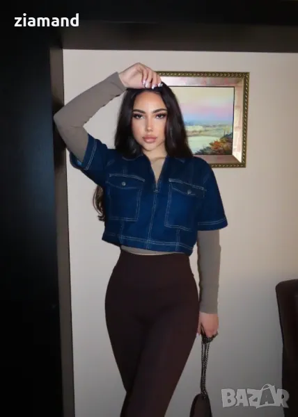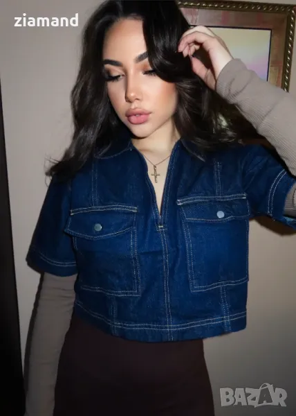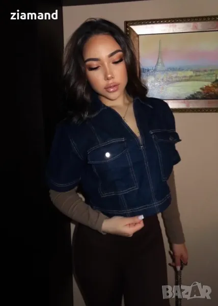 Деним къса блуза с къс ръкав