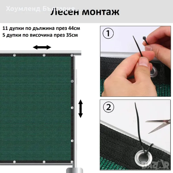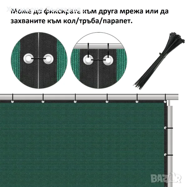 Тази непрозрачна мрежа се фиксира бързо и лесно посредством свински опащки (включени в комплекта 30 бр).