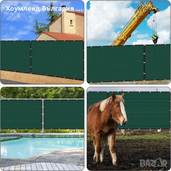 ограда. Едновременно ще Ви предпази атмосферни условия (вятър, дъжд, слънце), ще прегради имота ви и няма да допуска видимост към вас. Зелената мрежа за ограда е подходяща за преграждане на дворове, парцели или тераси. Може да се постави върху вече съществуващи мрежи или да се монтира без ограда.