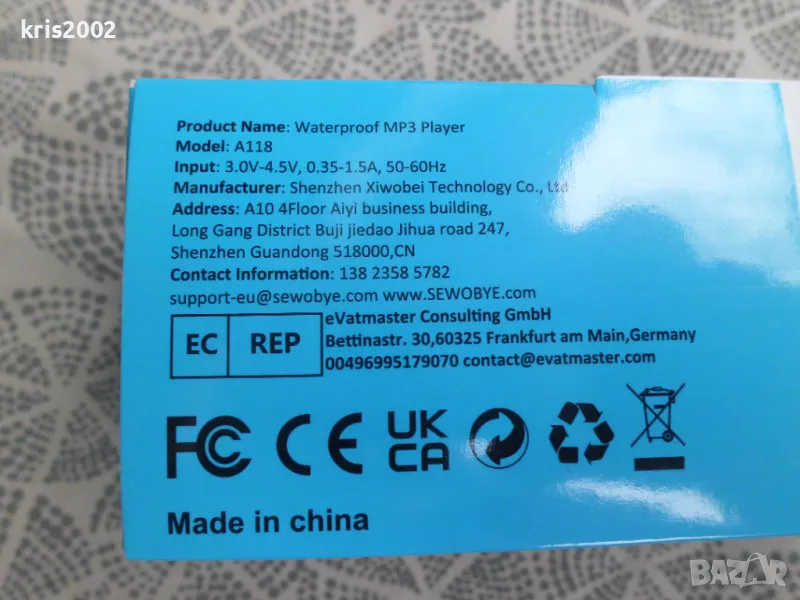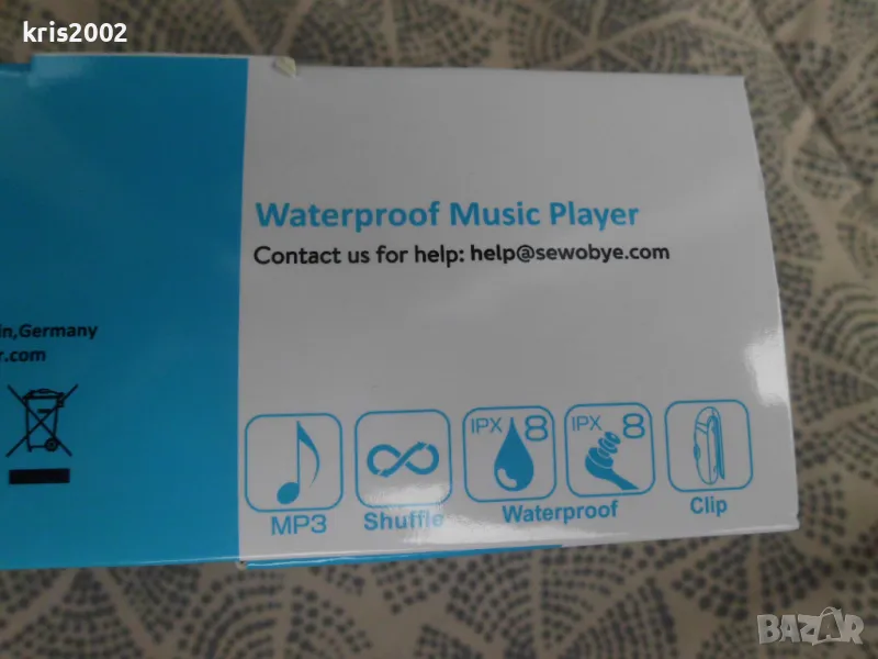 Водоустойчив MP3 плейър SEWOBYE за плувци, бегачи или спортисти на открито.