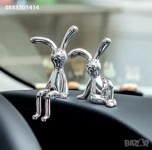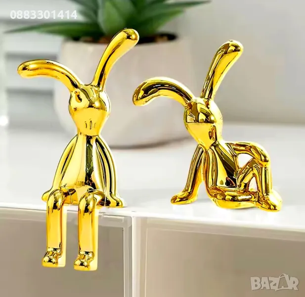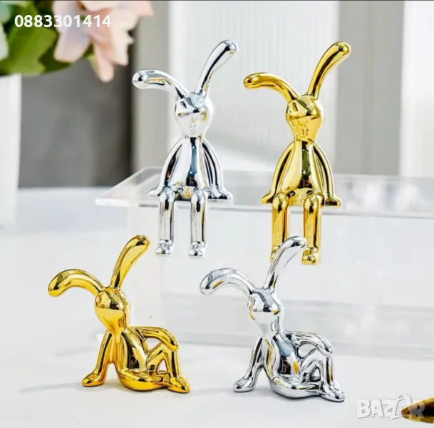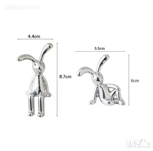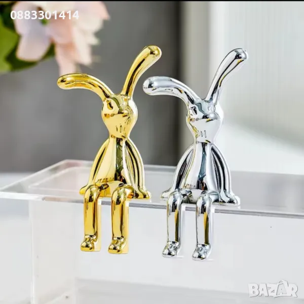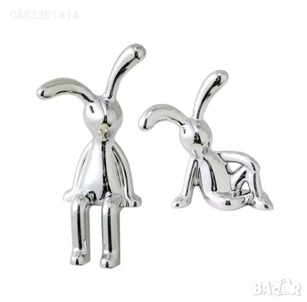 Комплект 2 броя декоративни зайчета в цвят по избор: Златист или сребрист.