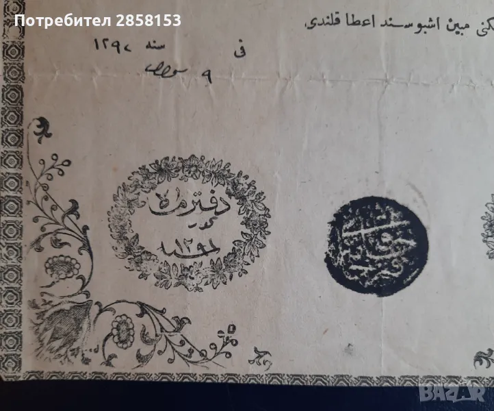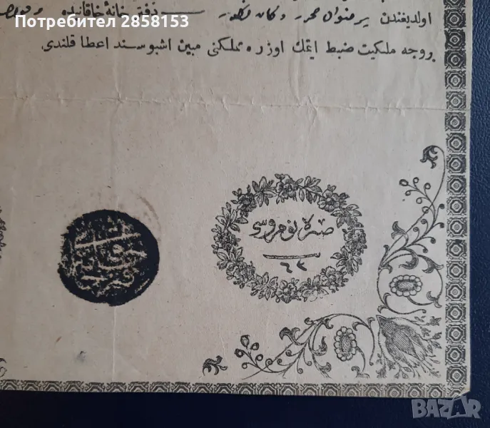 Стар Османски документ,тапия,Нотариален акт, снимка 1 - Антикварни и старинни предмети - 49623786 Стар Османски документ,тапия,Нотариален акт, снимка 2 - Антикварни и старинни предмети - 49623786 Стар Османски документ,тапия,Нотариален акт, снимка 3 - Антикварни и старинни предмети - 49623786 Стар Османски документ,тапия,Нотариален акт, снимка 4 - Антикварни и старинни предмети - 49623786 Стар Османски документ,тапия,Нотариален акт, снимка 5 - Антикварни и старинни предмети - 49623786 Стар Османски документ,тапия,Нотариален акт, снимка 6 - Антикварни и старинни предмети - 49623786 1/6