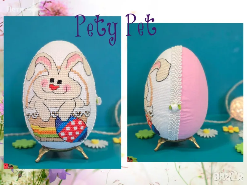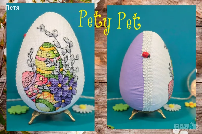 Великденски яйца 12см. Отпред с бродерия, отзад с плат. По желание може да се сложи и панделка отгоре или друга декорация. За повече информация или връзка с мен, моля пишете ми.