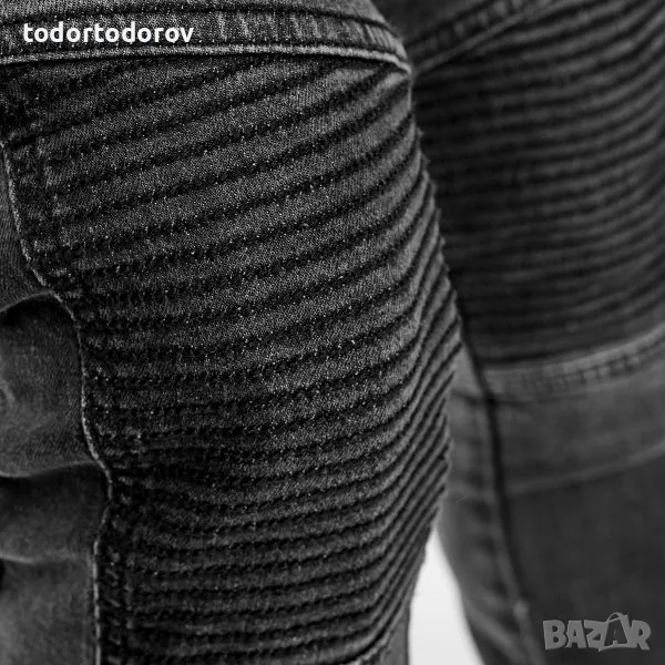 Долната част на крачолите е с цип за да улеснява обуването на мото ботуши.