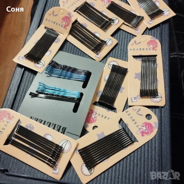 Обикновенни фиби добра изработка стегнати със заоблени върхове за да не скубят косата цена 1.5 за 10 бройки на картонче