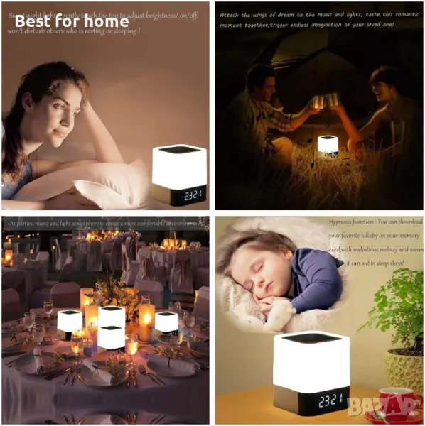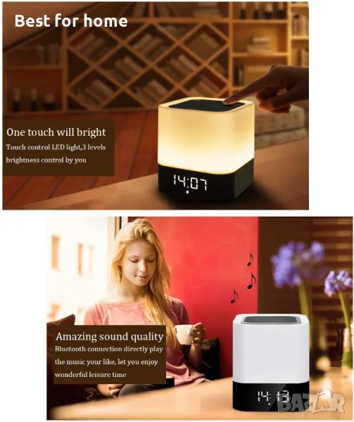 Нощна лампа WamGra Bluetooth високоговорител, будилник и сензор