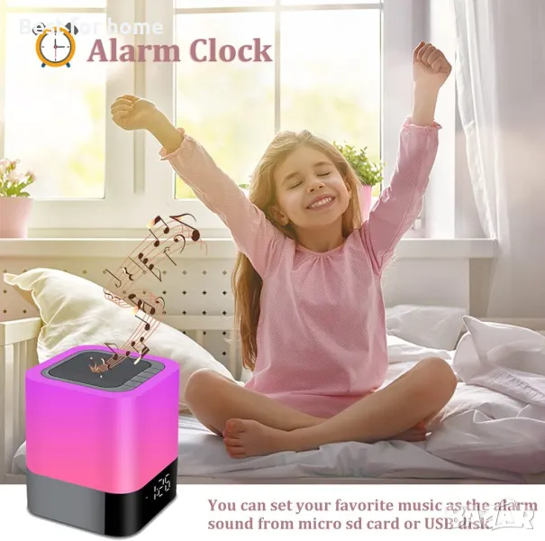 Нощна лампа WamGra Bluetooth високоговорител, будилник Bluetooth високоговорител Сензорен сензор Нощна лампа MP3 плейър, Димируема 48 LED нощна лампа с промяна на цвета за спалня, подарък за деца, момичета, тийнейджъри.