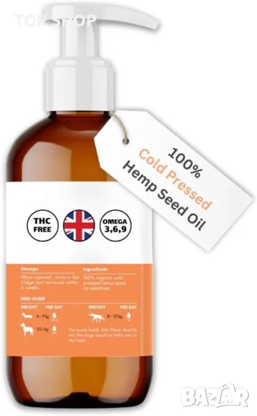 Изберете „Органично масло от конопени семена за кучета“ като естествено успокояващо решение, подходящо за домашни любимци от всякакъв размер. Тази формула не само поддържа вашето куче спокойно без нужда от спрейове или добавки, но също така насърчава здрави стави. Той е обогатен с мастни киселини и работи синергично с добавки като куркума, глюкозамин и зеленоуста мида. Освен това, той подхранва и поддържа здрава кожа, благодарение на мощните антиоксиданти и Омега 3, 6, 9 мастни киселини, ефективно успокояващи надраскване, облекчаване на сърбеж по кожата и справяне с проблеми с ушите. Продуктът е естествен, състрадателен и не съдържа изкуствени оцветители, багрила, силни химикали и синтетични добавки, осигурявайки безопасност и комфорт за вашия домашен любимец.