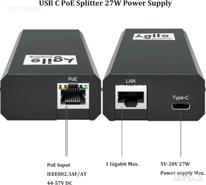 AgilePoElink Gigabit PoE сплитер към USB C, PoE+ конвертор за USB Type-C PD (5V-20V до 27W), снимка 1 - Кабели и адаптери - 49627290 AgilePoElink Gigabit PoE сплитер към USB C, PoE+ конвертор за USB Type-C PD (5V-20V до 27W), снимка 2 - Кабели и адаптери - 49627290 AgilePoElink Gigabit PoE сплитер към USB C, PoE+ конвертор за USB Type-C PD (5V-20V до 27W), снимка 3 - Кабели и адаптери - 49627290 AgilePoElink Gigabit PoE сплитер към USB C, PoE+ конвертор за USB Type-C PD (5V-20V до 27W), снимка 4 - Кабели и адаптери - 49627290 AgilePoElink Gigabit PoE сплитер към USB C, PoE+ конвертор за USB Type-C PD (5V-20V до 27W), снимка 5 - Кабели и адаптери - 49627290 1/5