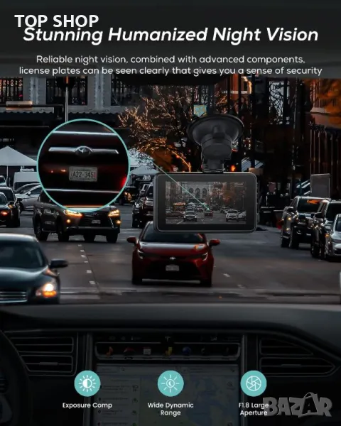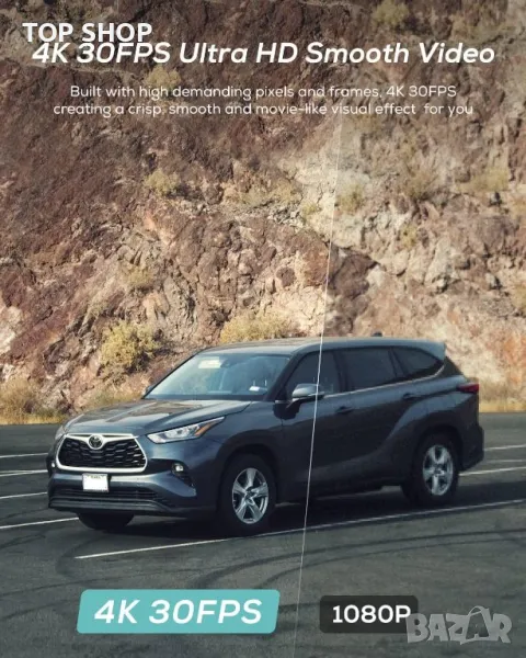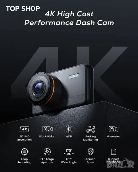 Оборудван с 4K камера с ултрависока разделителна способност, тази камера за управление заснема кадри с 3840x2160 пиксела с широкоъгълен обектив от 170°, гарантиращ липса на слепи петна денем или нощем. Той разполага с интелигентен цикличен запис, разделящ съхранението на аварийни и нормални зони и автоматично задейства цикличен запис, за да предотврати загуба на данни. G-сензорът заключва видеоклипове по време на внезапни сблъсъци, осигурявайки важни записи на инциденти. В режим на паркиране той открива удари и започва да записва, предлагайки целодневно наблюдение (изисква се кабелен комплект). Неговата бленда F1.8, нощно виждане и HDR гарантират ясни изображения дори при слаба светлина. 3-инчовият IPS екран осигурява ясно възпроизвеждане, всичко това в компактен дизайн.