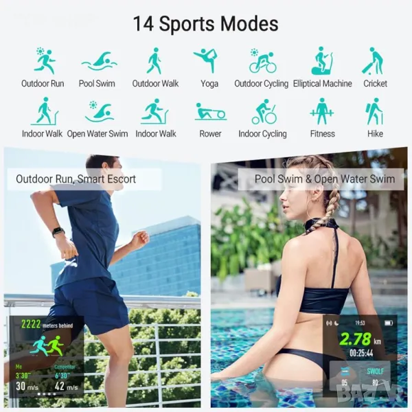 ZOSKVEE SmartWatch, вграден GPS с 14 режима за Android iOS