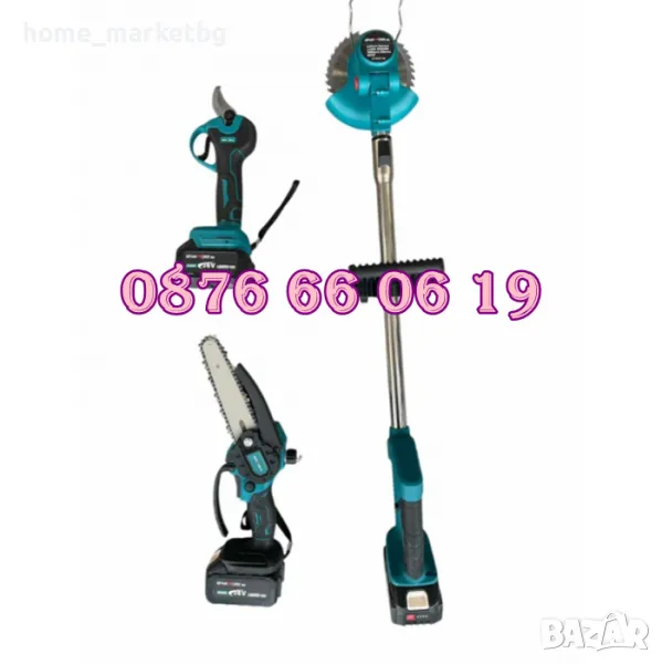 Комплект 3 в 1 акумулаторна лозарска ножица, мини верижен трион и акумулаторен тример 36V 8Ah