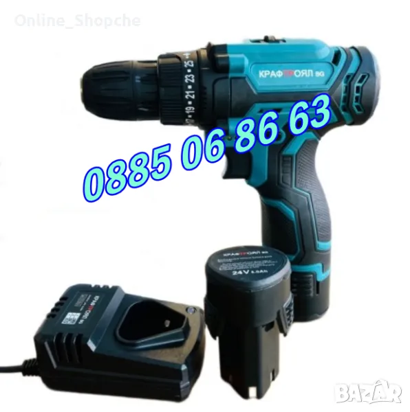 Акумулаторен винтоверт 24V 6Ah с 2 скорости, 2 батерии и накрайници