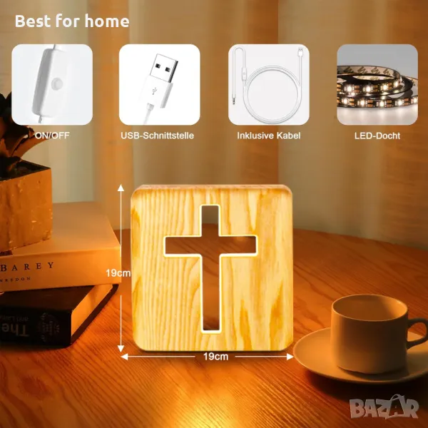 Много специален подарък, пълен с любов: нощна лампа Кръстът на Исус. Това е идеалният религиозен подарък за приятели, семейство, възрастни хора, баби и майки, които ценят молитвата и медитацията. Покажете своята признателност и любов, като изберете този внимателен и значим подарък. Също така е чудесна идея за подарък за религиозни поводи като кръщене или потвърждение.