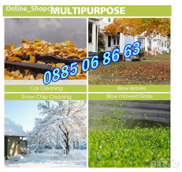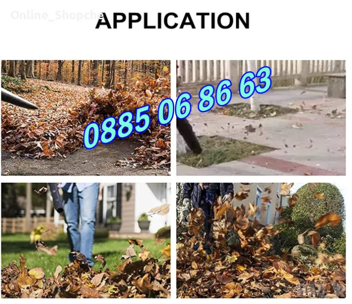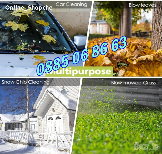 Подходяща е за използване в градината за издухване на лист. Има 2 накрайника. Литиево-йонната батерия.